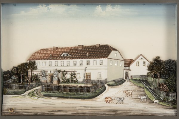 Ein herrschaftlicher Hof in Schönwalde mit zwei Eingangsskulpturen
